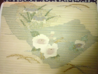 この前作り帯にしてもらった菖蒲の絽綴れ帯も、柄はともかく先取りはもうちょっと早いかな?とか・・・。