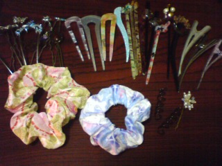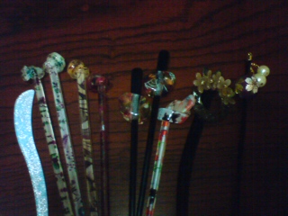 そして、プラスチック製かんざし(1本だけ木製)で、