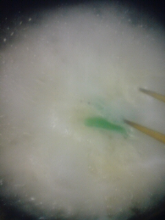 くもっていますが、今回はエンドウを青味として加えるので、⑤の工程があります。