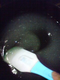 もっと糊状に固くなるまで頑張って水分を飛ばすほうが良いみたいですね。