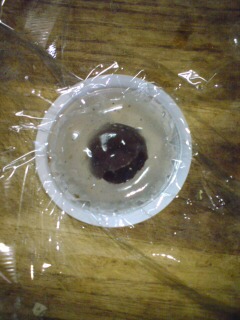 輪ゴムとラップは適当な数を用意します(ちょこっとした深めの小皿もあるといいですね)。