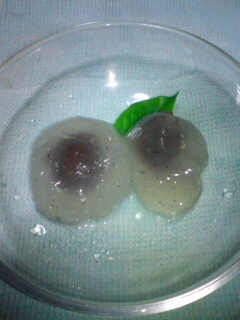市販されているものは、もう少し餡の量が多いので、より目玉ちっくになります。でももっと透明感があって、涼やかで綺麗ですよ。