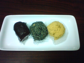 ちなみに、関東タイプの『餡子、黒ゴマ、黄粉』です。