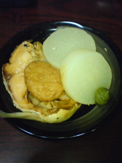 (大根の塩が薄かったので、柚子胡椒で今回は頂いてみました。)