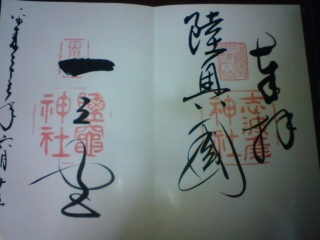 2ページ見開きにわたってドーンと書かれ御朱印は、同じく『東日本長距離散歩』で急遽立ち寄ることになった『塩竈神社』と『志波彦神社』