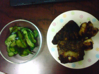 一応、竜田揚げとキュウリのゆかり漬け、とでも申しましょうか・・・。