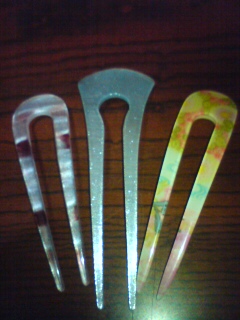 そして、プラスチック製かんざし(1本だけ木製)で、