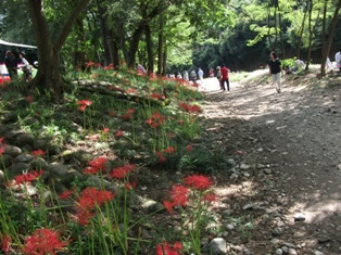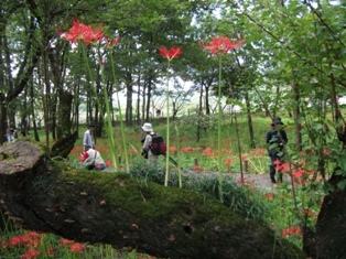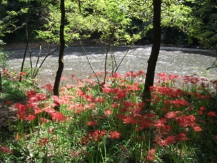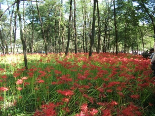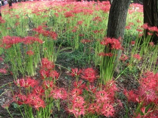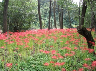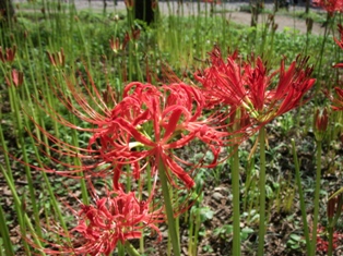 少なくとも拙宅のある県内で有名な彼岸花の名所、『巾着田』と呼ばれている一帯です。